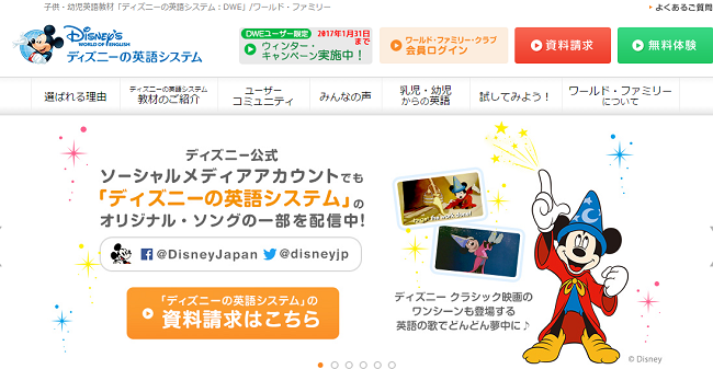 ディズニーが認めた幼児用英語教材です。国際社会に対応していけるような英語学習の導入として、楽しみながら慣れ親しむのにぴったりです。カードやマジックペン、歌やお話のDVD、絵本などなど、ディズニーのかわいいキャラクターとともに、様々な角度から英語に触れることができる教材です。