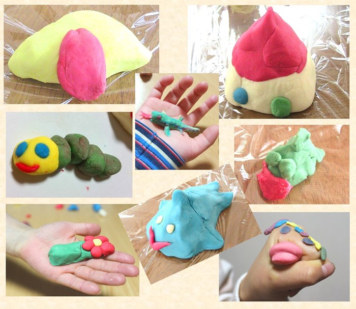 ※小麦粉粘土は、乾くとボロボロとくずれやすく作品を残すには向いていませんが、どうしても残したい場合は作った後にオーブンで焼くと良いそうです!