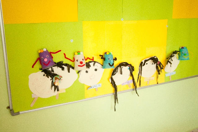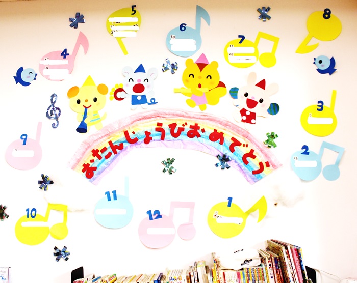 壁面が気になって子供達が集中してくれない…という声もありますが、壁面の飾りがとてもステキで、子供達の関心を集めているということでしょう。