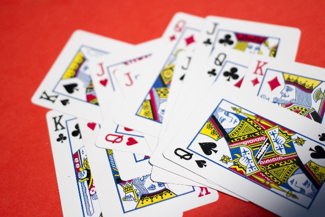 トランプの束の一番上にエース4枚をセットしてから4つの山に適当に分けます。