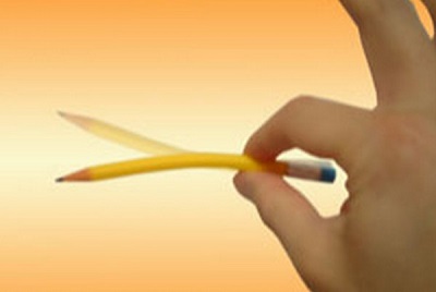 鉛筆が横になるように親指と人差し指で軽く持ち、上下に動かすと、曲がっているように見える!というシンプルな手品です。