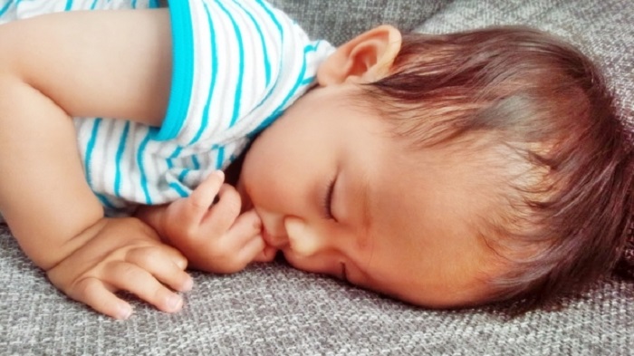 寝る前にどうしても指をしゃぶってしまう時は、寝てからそっと指を口からはずししばらく手をつないであげます。